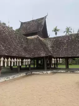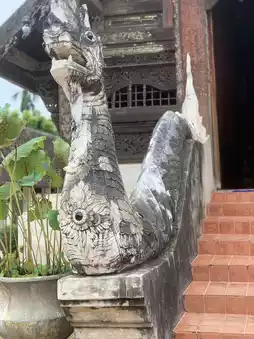Wat Ton Kwen, or Wat Intharawat, is located on Soi 3, Nong Kwai Subdistrict, Hang Dong District, Chiang Mai Province (near the Royal Park Rajapruek). Wat Ton Kwen is an ancient temple with a beautiful exterior. The temple grounds are shady and surrounded by palm trees, creating a mystical, ancient atmosphere. The tall palm trees are probably long-established. The ancient temple atmosphere, surrounded by these large palm trees, gives Wat Ton Kwen a truly authentic Lanna charm. It's no wonder it's been used as a filming location for numerous dramas. The architecture at Wat Ton Kwen is renowned for its exquisite Lanna architecture, recognized by the Association of Siamese Architects as an outstanding preserved building.