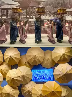 When you step through the museum's entrance, you're greeted by a kaleidoscope of vibrant umbrellas ⛱️suspended from the ceiling, casting colorful shadows on the walls🧱.