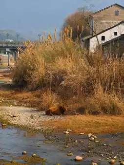 In addition to the villagers who are busy washing and drying by the creek,