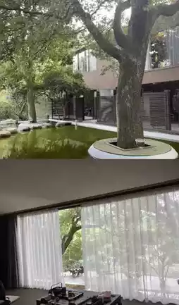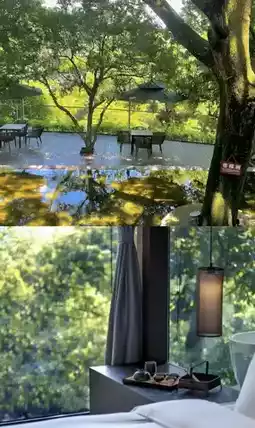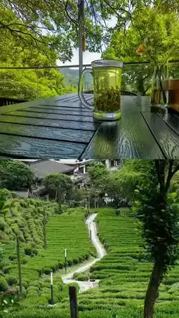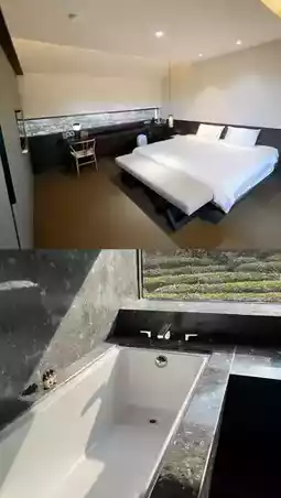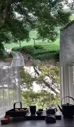 The tea field room has a super large floor-to-ceiling window, with a large window facing the tea field on the north side, where you can see the tourists outside, take photos, make tea, eat fruit, and watch TV after entering the room.