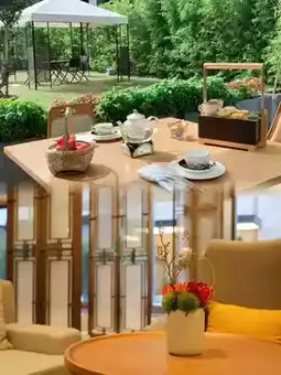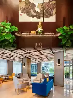 The entrance of the hotel is a unique gatehouse embedded in the gray brick and tile arcade along Dongpo Road. The doorposts on both sides are carved with the beautiful scenery of the four seasons: Su Causeway Spring Dawn, Winding Courtyard Lotus, Calm Lake Autumn 🈷️, Broken Bridge Snow 🌨️, which silently record the rich historical and cultural stories of Hangzhou, forming a sharp contrast with the modern architecture and life scenes on the lakeside. The ceremonial entrance through the gatehouse allows guests to switch freely between bustling city life and quiet travel life.
