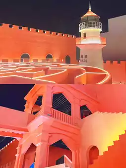 Who can resist the Pink Castle, right? After dinner, take little Yaoyao for a walk in the castle, digest the food, and enjoy this beautiful night view. Haha, a bit arrogant, huh?