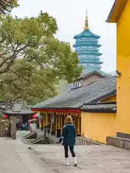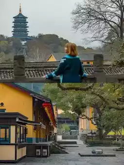 The buildings in the temple are very beautiful in Chinese style. There are many beautiful photo spots. I recommend walking to the back and going up to the top. You will see Leifeng Pagoda. The entrance fee is only 10 yuan. Anyone who comes to Hangzhou must come here. It's very beautiful!!