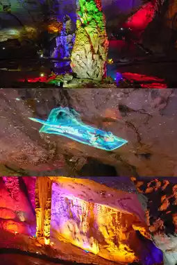 ✅Jiuxiao Biyun Cave: Take the Flying Tower up, then climb a short distance to reach the largest cave hall in Asia-Pacific—Jiuxiao Biyun Cave, marvel at nature's craftsmanship, with stalagmites everywhere, interlacing light and shadow, and astronaut projections, as if you've stepped into another planet's mountains and seas.