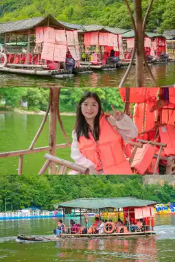 ✅Bamboo rafting: On the bamboo rafts of Xiaoyao Rock Ridge Lake, the scenery unfolds like a painting, with green bamboo swaying on both sides and mountain shadows dancing, a rare moment of tranquility outside the city's hustle and bustle🍃