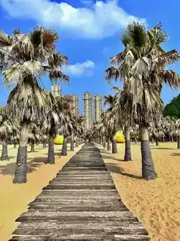 The winding stream is surrounded by a beach where children can play, or you can take a boat trip and enjoy the view of Sanya coconut trees. There is a big yellow duck