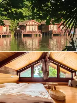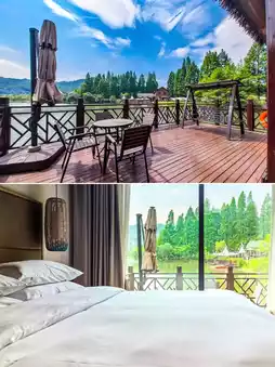 【Pan-Lake Thatched Cottage】Five exclusive water cottages on Xianghu Lake, with high-quality amenities like air conditioning and water heaters, offering a unique lodging experience with private courtyards and houses, and the children's favorite - the whimsical swing room.