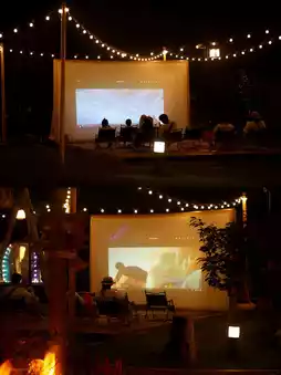 3⃣️Open-air movie: Do as you please, forget the worries, and have a laugh together. Watching a movie under the starry night sky, feeling the breath of nature, is really too comfortable.