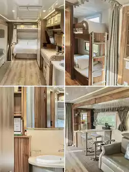 ✅ This time we experienced the courtyard 🏡 RV with the kids, equipped with air conditioning, water heater, and refrigerator, so it's not hot even in summer ❄️. The large bed is designed as a bunk bed, perfect for a family of four.