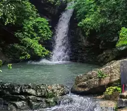 Second, there is Shenlongtan. The stream water rushes down from the upstream, layer by layer, just like a dragon descending from the sky, swooping into the pool, so it is called Shenlongtan. Although the pond is not big, it is quite impressive. Shenlongtan has been a place where local people pray for rain since ancient times, and even today some locals still come to the pond to burn incense and pray.