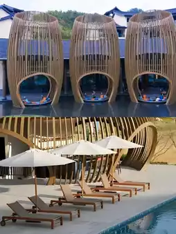 In Hangzhou!! A great place to stay is the Tianmu Mountain Dusit Thani Hotel.