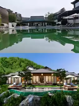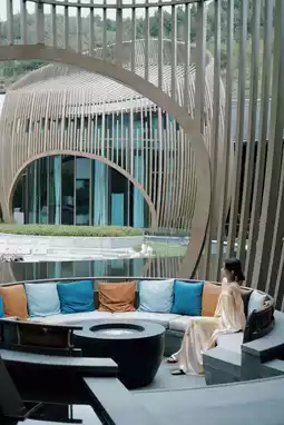 The hotel's style is a fusion of Chinese and Thai styles. Looking out from the room balcony is like a landscape painting, with a Xieshan-style roof, fish scale glass tiles, teak buildings, paired with distant mountains and near water, interpreting Oriental aesthetics to the extreme.