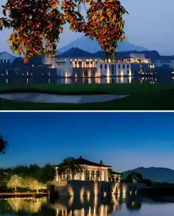 Fuchun Resort is located on the picturesque banks of the Fuchun River. This land was once the source of inspiration for the Yuan Dynasty painter Huang Gongwang's painting "Dwelling in the Fuchun Mountains" and has been a place of interest for literati and scholars since ancient times. The resort is close to Huang Gongwang Forest Park, surrounded by mountains and beautiful scenery. There are also family-friendly attractions nearby, such as Songcheng and Longmen Ancient Town.
