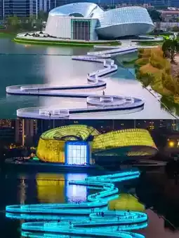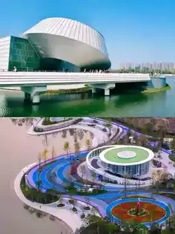 There are themed gardens, art galleries, creative markets, music fountains, lakeside campsites, water parks, children's playgrounds, and bike paths.