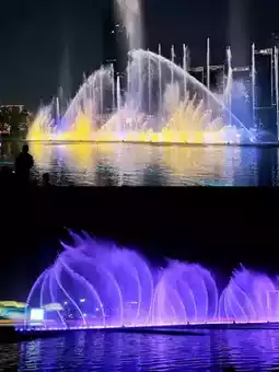 "Water Rhyme Liangzhu" music fountain, located on the north side of the park lake, the water column can spray up to 80 meters, dancing in sync with lights and music