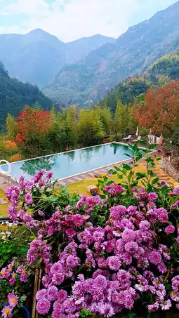 The hotel has nine courtyards of different styles, occupying a mountain top, hence the name Yishan Jiushe. It is only 2 km from the popular Zhina Village, but it is very quiet here. The courtyard is full of flowers, and the large infinity pool reflects the fall colors, which is very relaxing. The hotel also has a 500-year-old ginkgo tree, with golden leaves covering the ground, which is very romantic. I stayed in a detached wooden cabin in the bamboo forest, with a balcony facing the mountains and forests, and the yellow and red trees dyed the mountains in colors. Bamboo Forest Slow Talk, this is an ideal vacation spot.