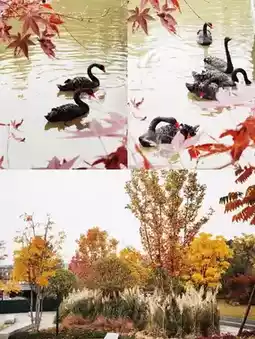 1⃣Black Swan Habitat: Swans are elegant, playing in the water. You can watch them up close, feed and interact with them, surrounded by green plants, clear lake water, showing the beauty of ecological harmony, adding a touch of vitality to the autumn scenery.
