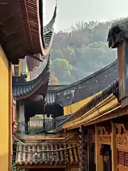 Lingyin Temple’s atmosphere is profoundly peaceful. Surrounded by misty mountains and towering trees, it’s a place where time seems to stand still.