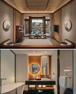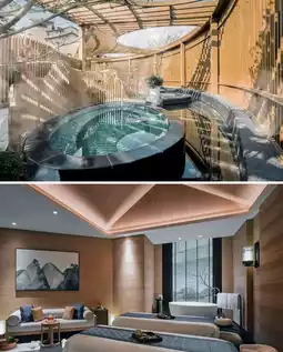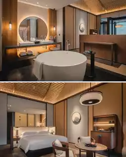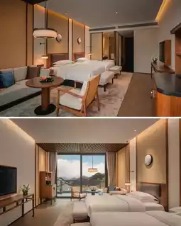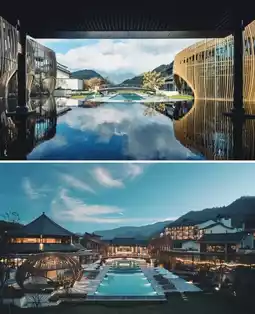 As the first high-end international brand hotel in Tianmu Mountain, Dusit Thani has brought an extraordinary standard. In terms of distance: about 1 hour's drive from downtown Hangzhou, about 2.5 hours' drive from Shanghai; in terms of environment: unique Xieshan-style roof, traditional Lanna architecture integrated into the mountains and forests; in terms of experience: enjoy Thai-style vacation, health soup spring, Thai-style spa; in terms of surroundings: 10 minutes' drive from West Tianmu Mountain, where there are ancient temples and red leaves with few people.
