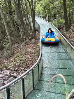 A 1 km long glass tunnel through the forest, rushing straight down the mountain, thrilling and exciting. You can go rafting with your kids.