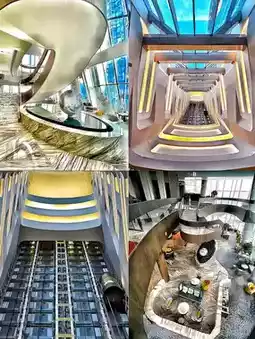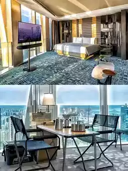 The hotel has 324 spacious and comfortable rooms. Each room is equipped with large floor-to-ceiling windows, offering a panoramic view of the city. The "Autumn Overture" suite is highly recommended, with its circular and curved design elements making you feel like you're living in a work of art.