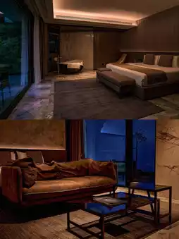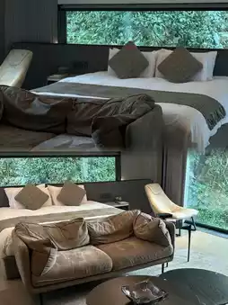 The floor-to-ceiling windows in the room bring the mountain view into the room, allowing you to indulge in the greenery. The photos are also beautiful.