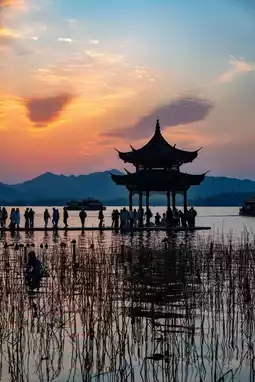 The weather finally clears up, wait for a beautiful sunset by the West Lake in Hangzhou, watch the sunshine change from hot to mild, the sky is dyed orange from blue to orange, the lake is sparkling with golden light, and enjoy the romance of sunset.