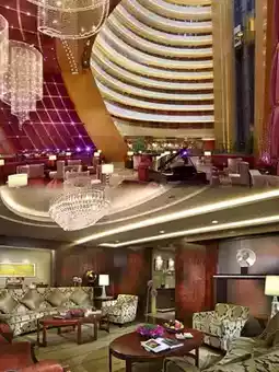 Stepping into the hotel, you're immediately struck by a sense of grandeur. The lobby starts on the 5th floor, with an 85-meter-high dome design that makes the entire space feel incredibly open. There's also a popular sightseeing elevator where you can overlook the magnificent view of the entire lobby. Every detail exudes luxury.