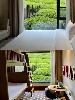 1β£ The hotel environment is elegant, surrounded by mountains with fresh air and a fragrant tea garden. Waking up and opening the curtains feels like being one with nature. Plus, there's a shuttle bus for easy transportation.