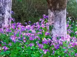 Small purple flowers dot the bushes