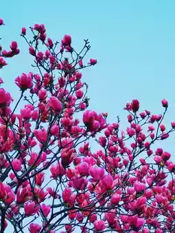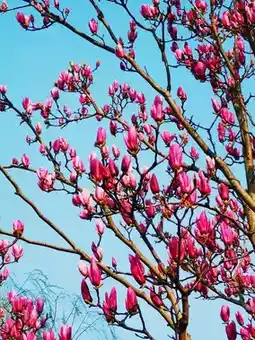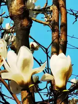 White and purple magnolia branches swaying