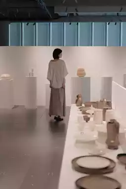 Ceramics, wood, metal, glass, and fabrics construct scenes of daily life, extending into art.