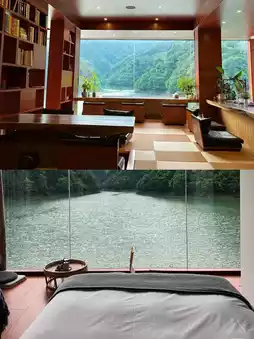 2. In the morning, the gentle sound of the valley stream will awaken you; in the evening, the chirping of insects and birds will lull you to sleep. Every moment is a sincere yearning for a beautiful life. Born Wild · Shendu Wubei Lin'an, nestled amidst the mountains and waters, faces the green hills and exclusively enjoys the tranquility of the riverside mountain scenery. The B&B has 12 guest rooms, most of which are situated by the water. Through large floor-to-ceiling windows, you can take in the ever-changing river views and rolling mountain scenery. Each room has a unique design style, some with tatami mats and others with comfortable double beds facing the river, catering to the needs of different travelers.