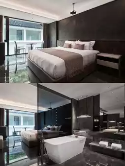 The hotel has a blue infinity pool, like an embedded sapphire, lit with stars at night, providing you with an aesthetic leisure experience. There is also an independent rest area in the backyard, where you can enjoy afternoon tea in the elevated circular open-air seats and feel the tranquility and comfort among the bamboo forest.🏊♀️☕