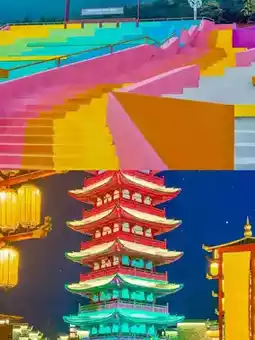 As night falls, the town is decorated with lanterns and colored lights, instantly transporting you to the Tang Dynasty. There are many lanterns and snacks, and it's free!