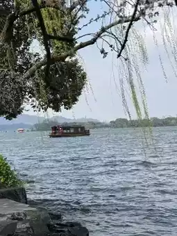 On a blustery Sunday afternoon, we joined the lively crowd at Su Causeway,the crown jewel of West Lake's Ten Scenes. The wind played with the willow branches as we strolled past blooming peach trees, their petals dancing in the air like pink snowflakes. Though the causeway buzzed with visitors, we found a quiet spot by the water's edge to sit and soak in the view. The lake shimmered under the sunlight, its surface broken only by passing boats- we waved at smiling tourists, who waved back as if we were all sharing a secret. Between the rustling willows, the laughter drifting over the water, and the timeless beauty of the lake, it was one of those perfect afternoons where even the wind felt like part of the poetry of West Lake