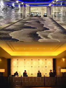 - The hotel is located in the central business district of Xiaoshan District and is a landmark building with a magnificent appearance. The interior decoration is luxurious and elegant. The high dome in the lobby is matched with a giant artistic chandelier, which complements the marble floor and creates a dreamlike atmosphere.