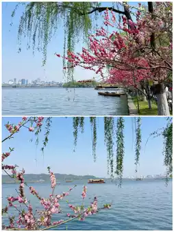 🗳West Lake: In April, West Lake is misty with spring rain. Su Causeway and Bai Causeway feature drooping willows and blooming peach blossoms - walking here feels like stepping into a painting. Take a boat ride to view iconic landmarks like Three Pools Mirroring the Moon and Leifeng Pagoda up close. Many teahouses by the lake offer Longjing tea while watching raindrops fall on the lake surface - truly delightful.