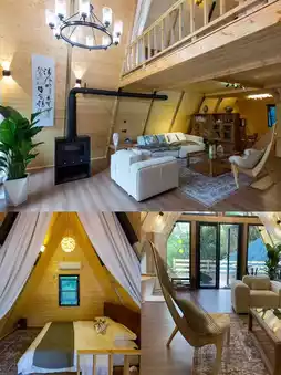 1️⃣Choose the second-floor loft! The bathtub faces the bamboo forest and stream, perfect for photos