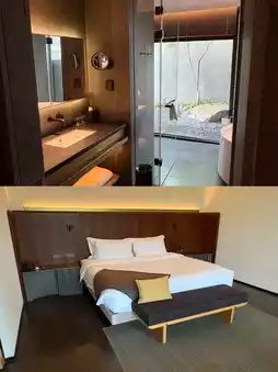 40 rooms and villas, categorized as "Hidden Stream," "Stream View," and "Stream Chase" series, starting from 60㎡, some rooms feature private soaking pools or waterfront terraces.