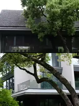 "Mokusu" Cultural Symbol: The hotel name "Mokusu" comes from Japanese, meaning deliberately preserved unharvested fruits, symbolizing reverence for nature. The design incorporates local elements like persimmon trees (native to Xixi Wetland), wupeng boats, and rammed earth walls.