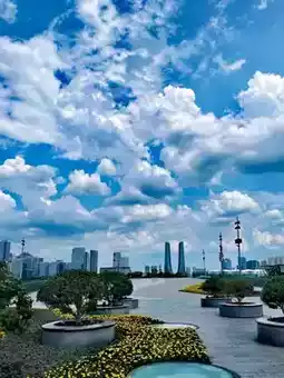Today's crystal-clear sky is exceptionally transparent, and despite the heat, it makes you want to go outside. Qianjiang New City is undoubtedly the best place to experience this city's charm. Taking an invigorating city walk here allows you to exercise while enjoying beautiful scenery. However, the summer sun is intense, so remember to protect yourself from the sun when going out, especially at noon, which is actually the best time to appreciate the crystal-clear sky.