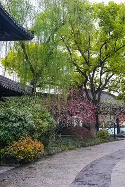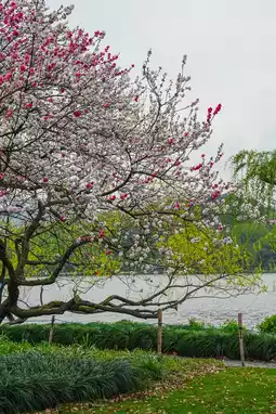 - South shore of Wugui Pond: 20 weeping crabapple trees mixed with cherry blossoms (both blooming around April 5)