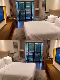 Hangzhou, a city known as "Heaven on Earth," is already breathtakingly beautiful. The hotel is located in Xiaoshan, Hangzhou, nestled among green mountains and clear waters, like a vibrant natural painting. Around the hotel, rolling mountains and the interplay of lake and mountain scenery make you feel as if you've entered a fairyland.