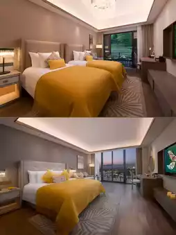 As soon as I entered the hotel lobby, I was greeted by a tropical atmosphere. Under the huge dome, the green plants were lush, and the sunlight shone through the glass, instantly drawing people away from the hustle and bustle of the city. The check-in process was very smooth, and the staff was warm and professional. They also thoughtfully introduced the hotel's various facilities and activities, which made me look forward to the upcoming vacation.