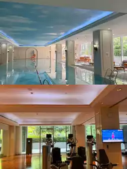 ✅ Complete Leisure Facilities: The indoor heated swimming pool is like a blue secret realm. After swimming, you can relax in the sauna next door 🧖 The fitness center is fully equipped with professional instructors. The most surprising thing is the helipad on the top floor, where you can not only overlook the stunning river view, but also take photos with a full sense of atmosphere!