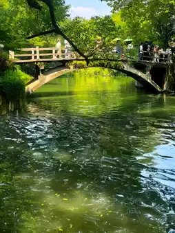 Best photo spots: Stone bridge under the ancient camphor tree, rowing boat passing through reed marshes, tower-top view from Hezhu Street.