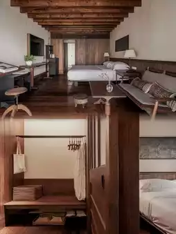 The lake view suite is especially recommended. It not only has a private terrace overlooking the West Lake, but also has a handmade awning boat-shaped minibar and special bedding dyed with Longjing tea residue. Customized "Ten Scenes of West Lake" themed tea set, flower vases and saucers handmade by local potters, intelligent bathroom system, and a pillow menu offering 6 special fillings including cassia seeds and tea.