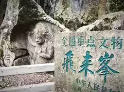 Before entering Lingyin Temple, tourists first pass through the Feilai Peak Scenic Area. Along the way, there are cliff carvings from the Song and Yuan dynasties. The knife marks are delicate, the Buddha statues are lifelike, and it is a very large group of stone carvings. Among them, the smiling Maitreya Buddha is particularly eye-catching. Tourists strolling in the ancient forest can feel a moment of tranquility and comfort.