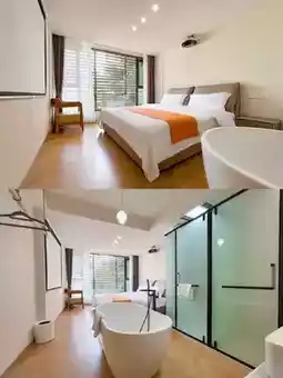 🛏Facilities: The B&B blends the elegance of Jiangnan water towns with modern comfort. With various room types available, it suits couples, friends, and families alike. Rooms feature cozy, tasteful decor with high-quality furniture. The beds are wonderfully soft 🛌 Each room has a projector for cozy movie nights. Bathrooms have separate wet/dry areas with smart toilets, Guli shower systems, Dyson hair dryers, and premium toiletries. The lobby includes a coffee bar and lounge - perfect for relaxing after sightseeing. There's also a meeting room ideal for corporate events or small gatherings.